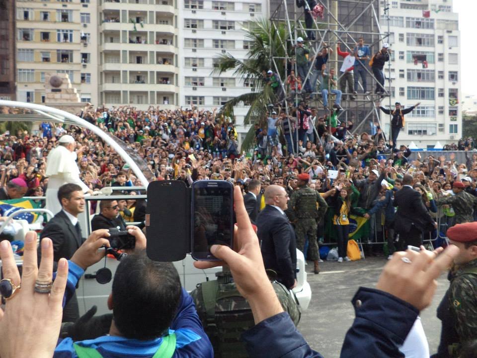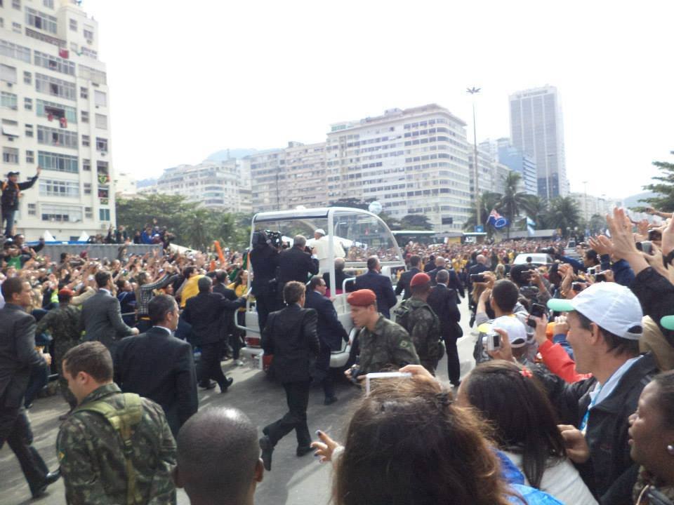 Tivemos a oportunidade de ver o papa de perto, não tocamos, mas vimos ele passar de papamóvel a poucos metros.