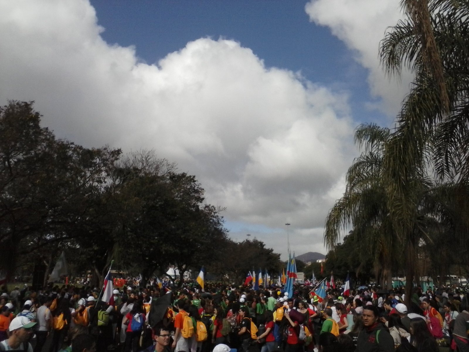 É minha primeira participação em Jornadas da Juventude já que foi a primeira realizada no Brasil. Afinal, essa foi a 28º JMJ que teve como criador o papa João Paulo II. Foi também minha primeira participação em eventos religiosos internacionais. Já havia participado de missões nacionais.