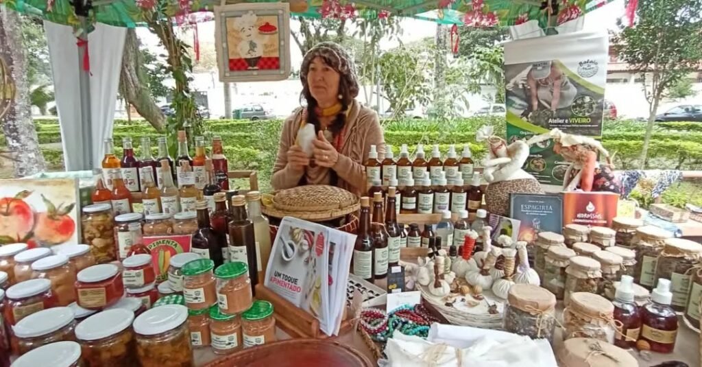 Há queijos de cabra preparados artesanalmente, especiarias que atravessam culturas, pães e fermentados que respeitam o tempo da fermentação natural. Cada produto expressa um modo de fazer que contrasta com a lógica do excesso e do descarte. Consumir ali é reconhecer a cadeia invisível que sustenta o alimento, fortalecer quem produz localmente e reafirmar uma economia que cuida da terra enquanto alimenta pessoas.