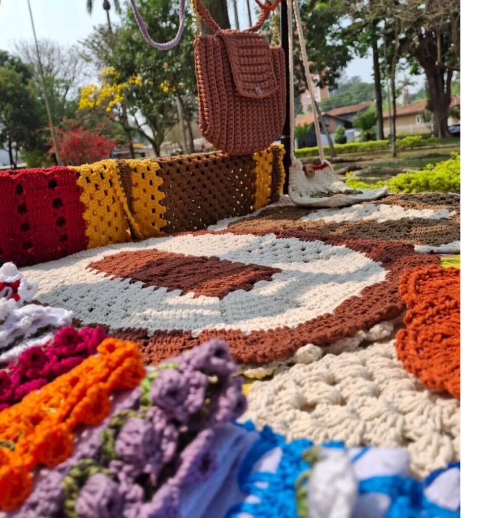 O artesanato presente na feira segue a lógica do cuidado e da autoria. Peças únicas, feitas à mão, recusam a repetição industrial e reafirmam o valor do tempo e da identidade cultural. Ao redor das bancas, intervenções culturais espontâneas surgem sem roteiro fixo com música, rodas de conversa, ações educativas e ambientais que nascem do encontro.